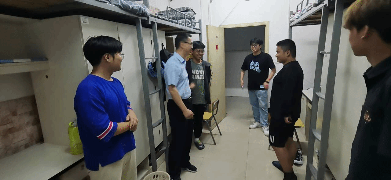 9月13日,2023级全体新生到校入住的第一天晚上,我院领导班子和院系辅导员走访了学院新生宿舍,深入了解同学们的入住和适应情况。