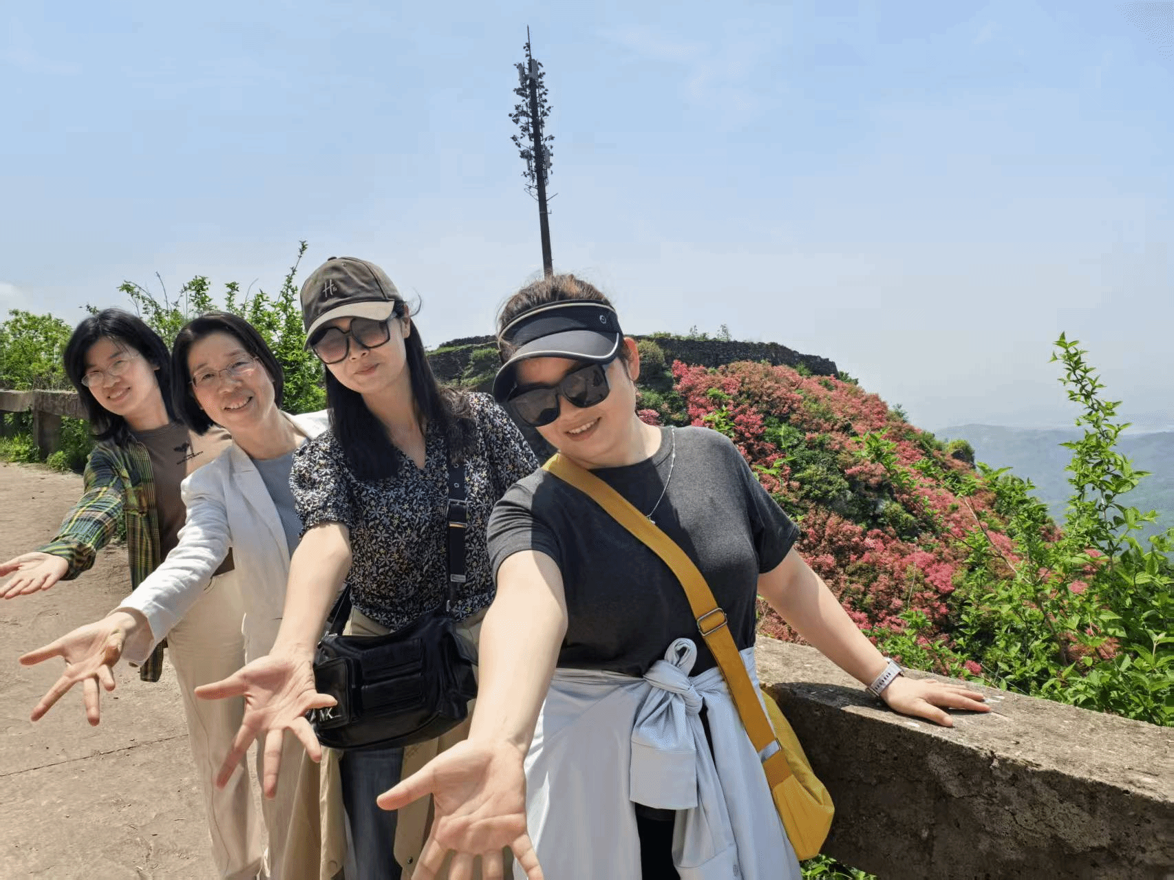 时值暮春,云雾山上的杜鹃花竞相绽放,漫山遍野灿若云霞。教职工们漫步于山间步道,呼吸着清新的空气,欣赏着“花中西施”的娇艳姿态。大家或驻足拍照,或登高望远,在繁忙的教学科研工作之余放松身心,感受大自然的生机与美好。