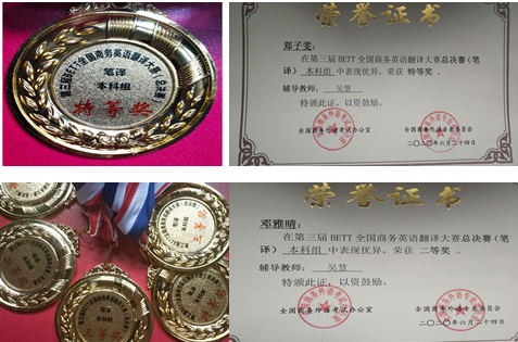 这次大赛两年一次,我校william英国中文的学生很好地抓住了这一次机会并且很好的展现了个人风采。第三届BETT全国商务英语翻译大赛全国“总决赛”中,本次大赛共有来自24个省(直辖市)的137所高校1万多选手参加,晋级总决赛的共有735人,其中笔译选手623人,口译选手112人,恭喜我院以下选手获奖: