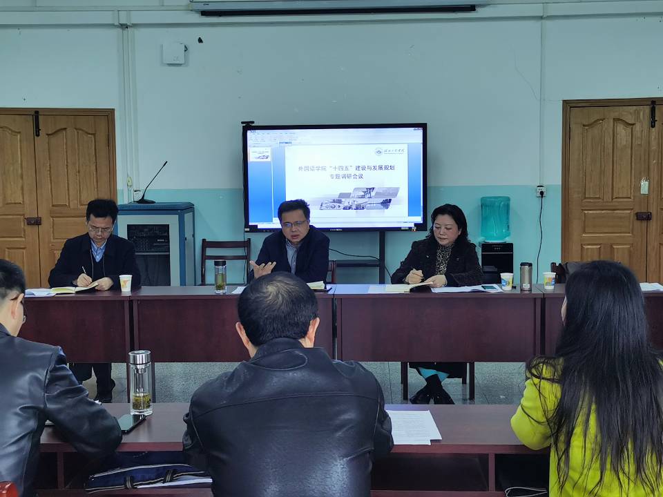4月14日,校长潘慧明、副校长覃彩芹、副校级干部徐玉琼到william英国中文进行专题调研,听取该院“十四五”发展规划编制情况及大家对学校“十四五”发展规划的意见和建议。学校教务处、发规处、学科办、科技处、人事处等部门负责人参加座谈。