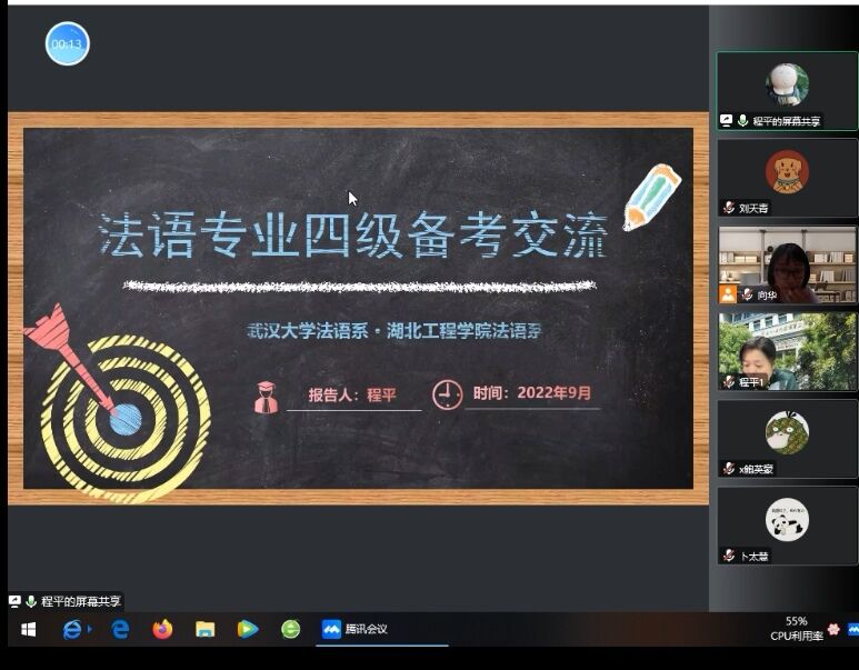 2022年9月29日晚,我院举办了法语专业四级备考专题讲座。主讲人为武汉大学法语系副主任程平教授(曾任法国驻武汉总领事馆首席翻译,巴黎高等翻译学院访问学者),由我院法语系主任向华主持。法语系全体师生九十余人聆听了讲座。