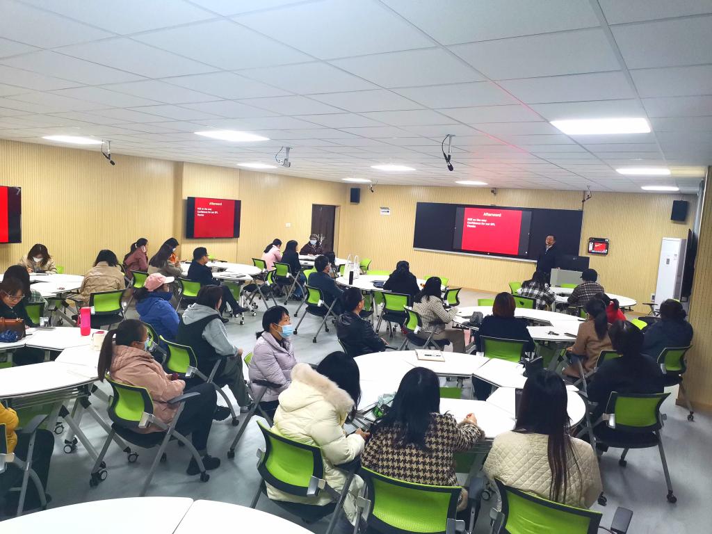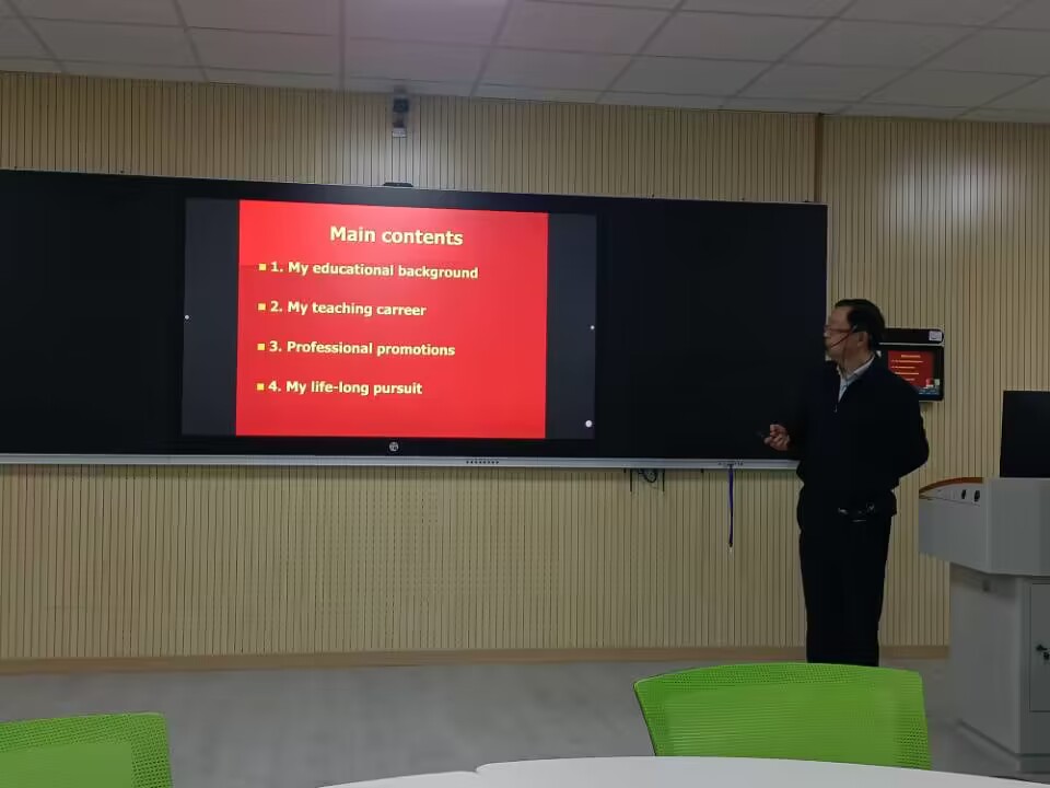 鲁定元教授围绕求学经历、教育生涯、职业发展和终生追求这四个主题展开分享。他首先从求学经历说起,向大家讲述了自己如何从中师毕业生到成为华中师范大学博士的经历,并鼓励大家在求学过程中直面困难、坚持自我教育终身学习。鲁教授对自己求学历程中的恩师仍然记忆犹新,娓娓道来中充满感激。接下来,鲁教授介绍了自己在教育生涯和职业发展过程中的几段经历。他认为,外语教师的职业发展要根据自身的情况做好规划,稳步前进,不需要艳羡他人的成功,相信坚持终将实现自己的目标。之后,鲁教授重点分享了他对于终生追求的理解和感悟,即从做一名合格教师到做一名理想的教师,并表示自己永远在路上。他指出,作为一名合格的外语教师,要广泛接触各种外语语言,不断地学习各学科知识,“积学即积德”,坚持目标,不断积累,为“人生意义”而活。鲁教授还提到了他一直坚持的几个学习工作小习惯:列事务清单、写心得日记、做学习笔记以及保留学生名录。整场讲座让全体教师感受到了鲁教授儒雅的学者风度,体会到了他对学校、对教学和学生都带着满满地回忆和不舍,对前辈、同仁和学生的温度,也感受到了演讲的力度。