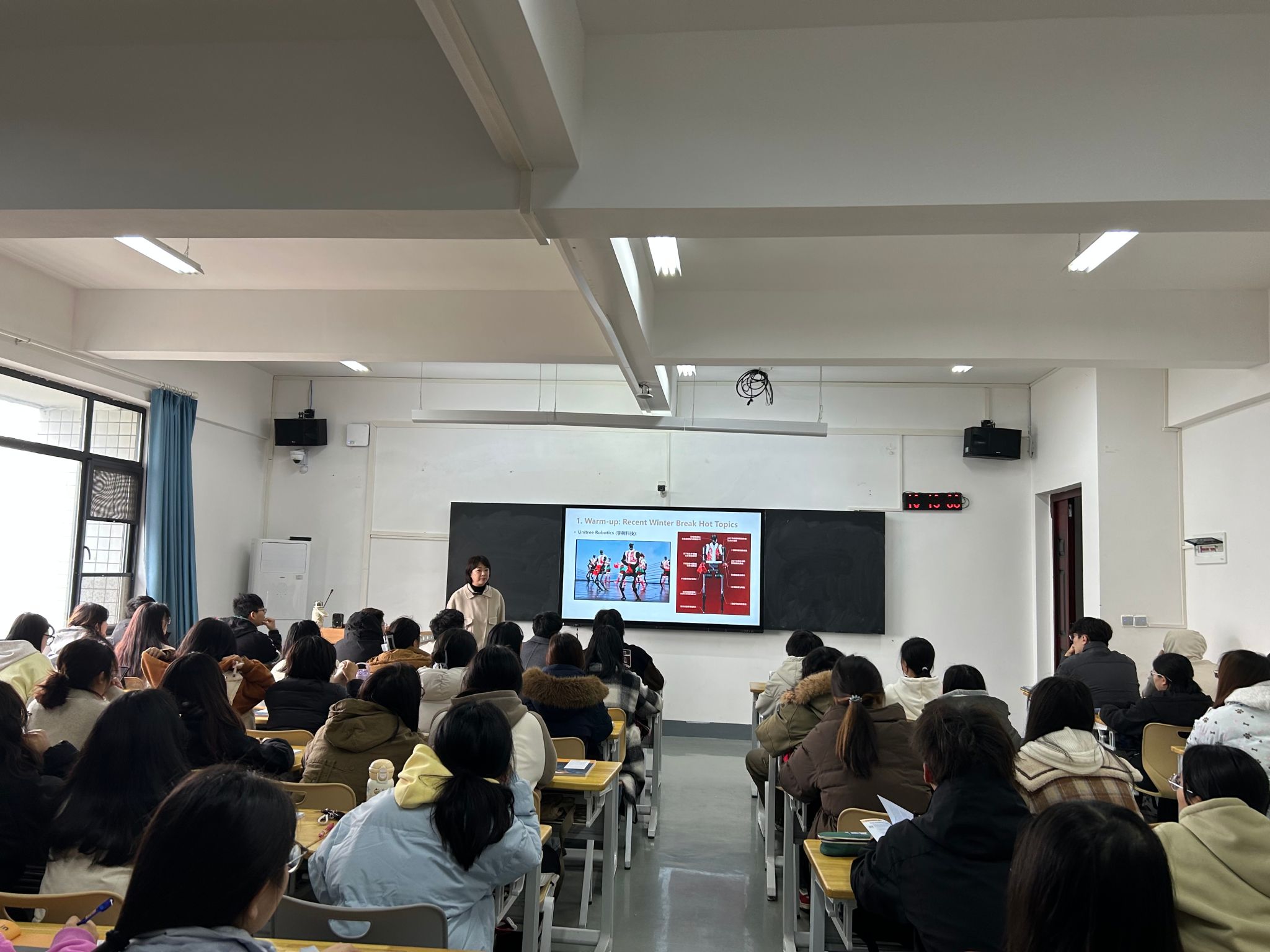 2025年3月11日,我院优秀青年教师付静博士为汉语言文学专业学生呈现了一堂别开生面的《大学英语(二)》公开课。我院副院长熊俊博士教授及部分教师参加了课堂观摩并随后开展了评课、研讨交流。