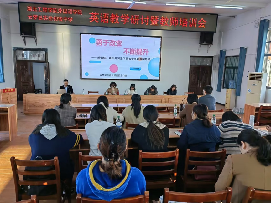 实验初级中学英语名师工作室的邓自强校长做了题为“勇于改变 不断提升”的专题讲座,鼓励教师们积极适应教育改革,不断创新教学方法和理念,以实现自我提升和提高教学质量。
