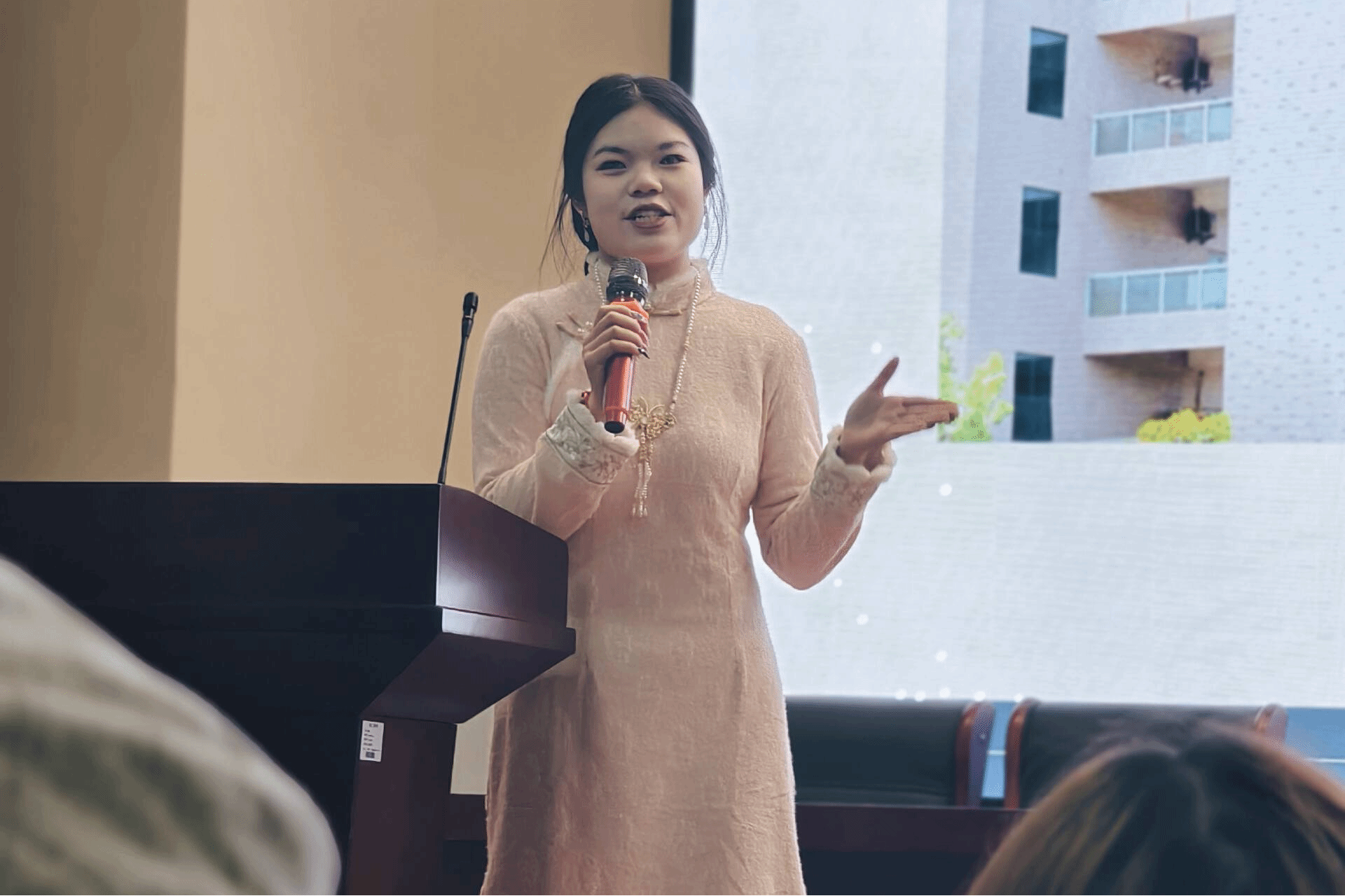 校一等奖学金与国家励志奖学金获得者李嘉源同学则通过具体的英语学习方法以小见大,强调了听与说在英语学习中的重要性。英语需要多听、多练、多写,才能将这门语言内化于心,从而达到熟练运用于生活实际的效果。
