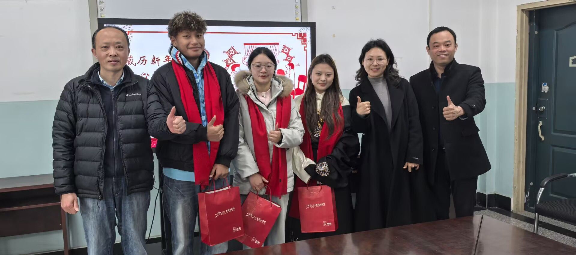 在传递祝福环节,赵书记为三位藏族同学一一送上了“吉祥如意中国红”围巾和精美“口碑”作为新年礼物。礼物虽小,却承载着学院对同学们的关爱与期望,希望藏族同学们在湖工学成“文武艺”,带着一身本领回到家乡,把党的温暖传递给更多亲朋好友,把家乡建设好,在更多父老乡亲中竖起自己和湖工的口碑。