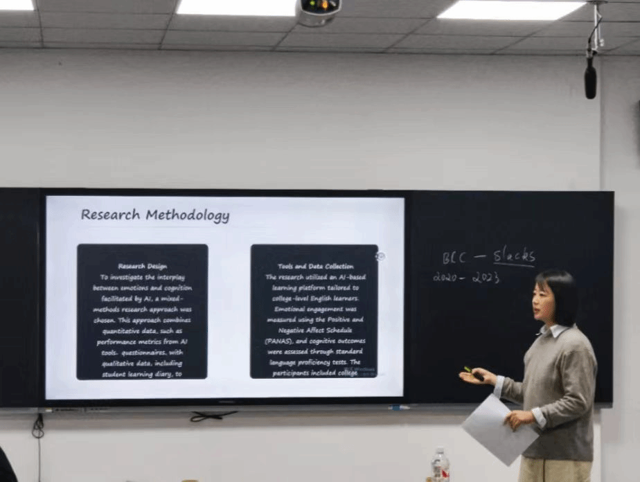 对于未来在教学和科研方面的规划和期望,付静老师希望继续深化“人工智能+英语教学”的研究,探索如何更有效地利用AI技术提升学生的思辨能力。同时,她也计划开发更多基于AI的教学资源,助力分层教学,让不同层次的学生都能在适合自己的节奏中成长。此外,付静老师也希望推动大学英语课程的教学改革,结合多模态学习环境,进一步提升学生的综合素养。