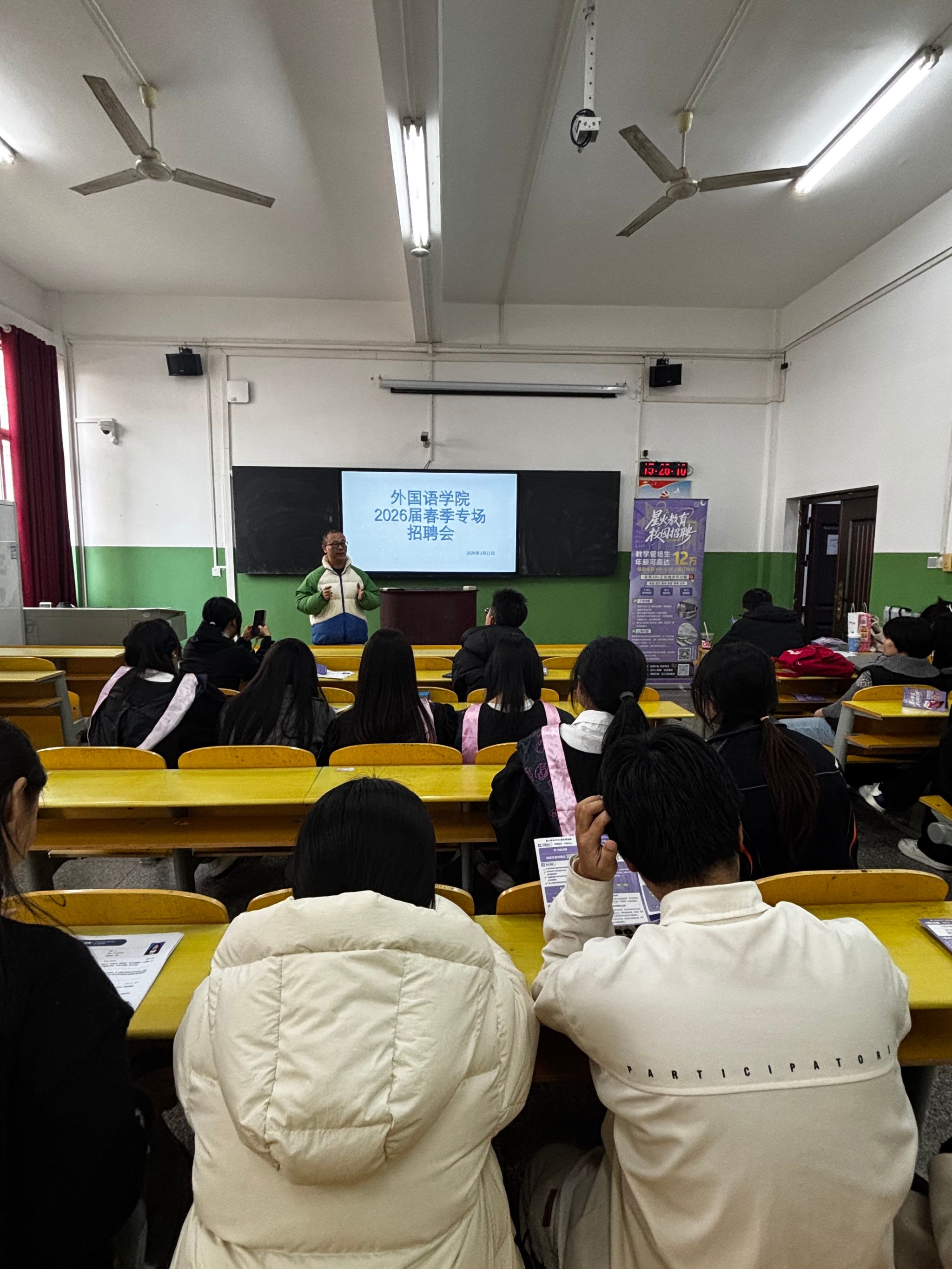 为全力促进2026届毕业生高质量充分就业,搭建精准高效的双选平台,3月21日下午,william英国中文成功举办了2026年春季专场招聘会。本次专场招聘会邀请了星火教育集团与浙江金义冉冉新媒体有限公司,为外语学子提供了丰富多元的就业选择。