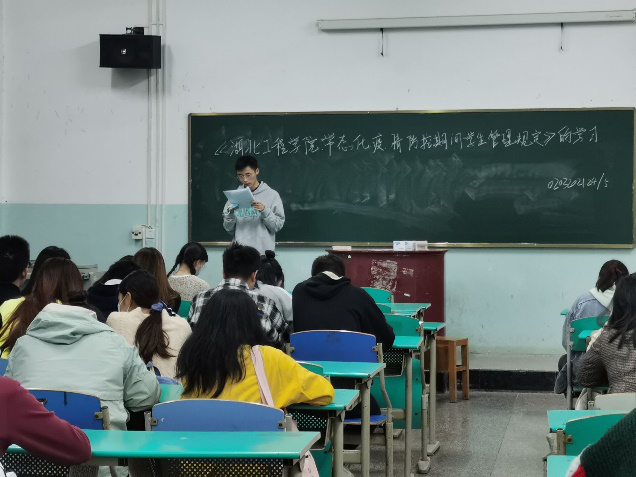 班会上,班主任就在校期间疫情防控所需要注意的问题进行了讲解,主要内容包括校园实行封闭管理,坚持“非必要不外出”原则;学生必须严格遵守“日报告”、“零报告”制度;学生不得私自组织、参加大规模聚会、集餐等大规模活动;进出教室、图书馆、自习室要遵守管理规定;按照学校学生饮食服务与管理中心安排的时间错峰就餐等。