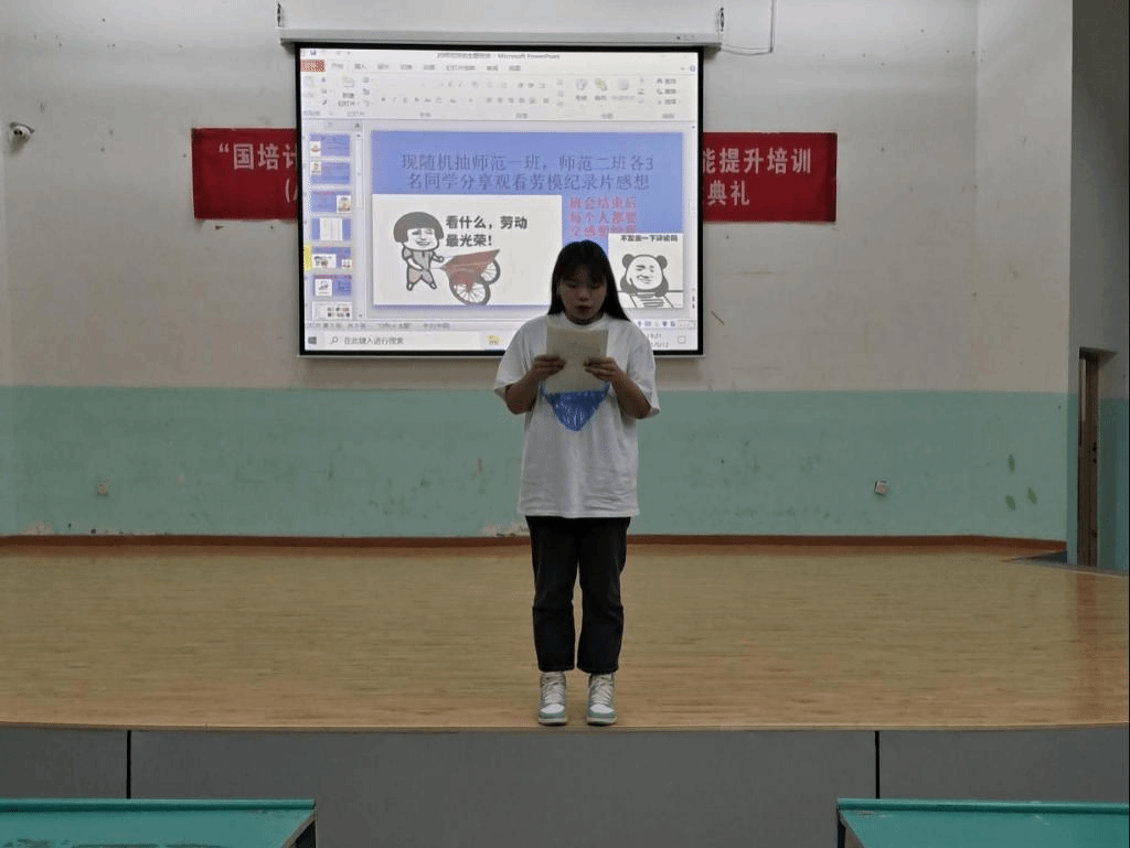 首先,同学们对观看的时代楷模事迹纪录片的感想进行了认真的讨论,大家分享了对劳动楷模的敬佩和对劳动的深刻认识,一些同学积极上台向大家展示自己的感想和体会。通过这一环节,同学们更加深刻地意识到了劳动的重要意义以及我们作为高校大学生该肩负的责任。