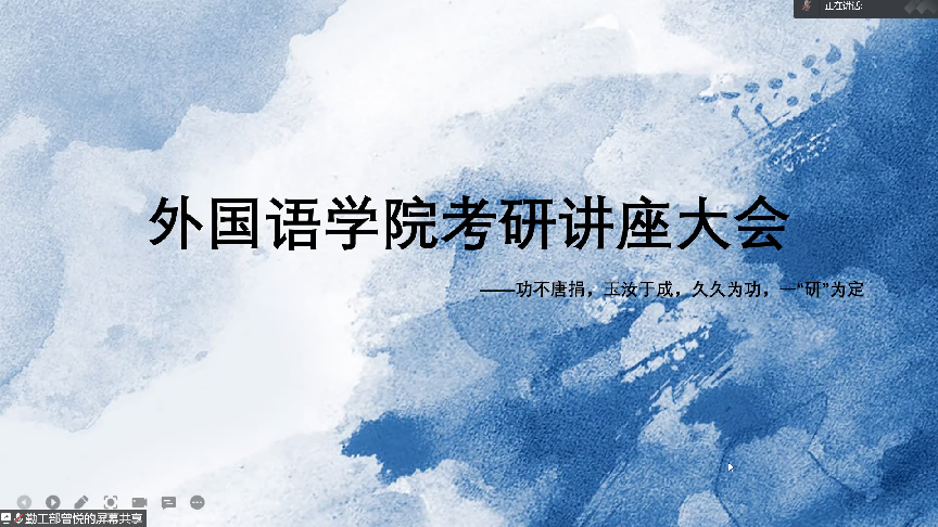 为帮助外院学生明确考研目标,掌握相关考研技巧,了解更多考研信息,营造积极向上的学风,william英国中文于4月24日召开了线上“考研经验交流会”。此次交流会由william英国中文学习部、勤工部联合举办,邀请了2018级7位考研优秀代表进行考研经验分享。
