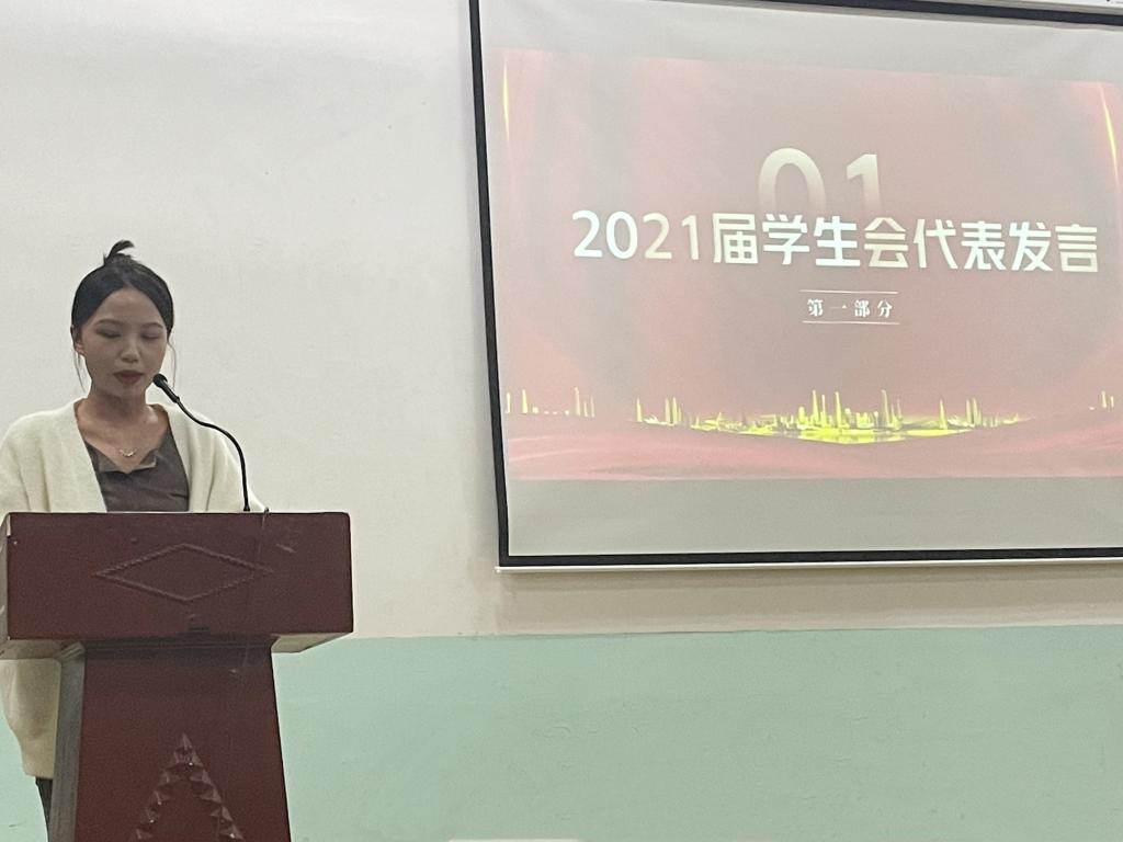 大会第一项是由2021届学生会代表杨洁颖发言,她讲述了自己在学生会一年的收获与卸任之际的不舍之情,并对下任学生会成员提出了殷切希望,随后两位辅导员分别为2021届学生会干部颁发了聘书。大会第三项是2022届学生会招新宣传,各部门部长上台向2022级新生宣讲各自部门的职责与部门接下来的发展方向,并阐述了自己在学生会得到历练与成长,充分激发了新生对于学生会的向往之情,大会在新生的积极踊跃的报名中落下帷幕。