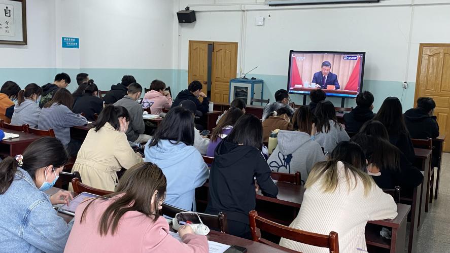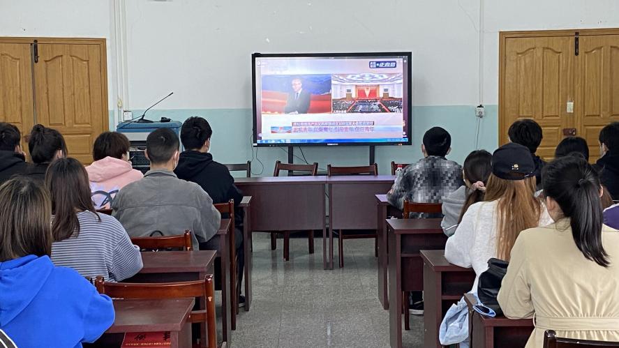 2022年5月10日上午10点,庆祝中国共产主义青年团成立100周年大会在北京人民大会堂隆重举行,中共中央总书记、国家主席、中央军委主席习近平同志出席大会并发表重要讲话。在做好疫情防控工作前提下,外院优秀共青团员代表在三楼会议室收听收看大会直播,认真学习领会习近平总书记在大会上的重要讲话精神。
